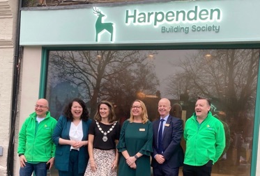 The official opening of the new location took place this morning at 10.30 with Town Mayor Beth Fisher cutting the ribbon. She eulogised the importance of a key local business and their presence on the High Street. ‘It’s not just bricks and mortar it’s service for the local community”. The CEO of HBS (Tracie Pearce) thanked all the staff who had worked hard to support the opening and reiterated the importance of community support. Pictured above left with our Mayor and Harpenden’s MP Victoria Collins. ALSO gathered outside were a number of other VIP’s inc HBS Chair Nigel Boothroyd. (second on the right)