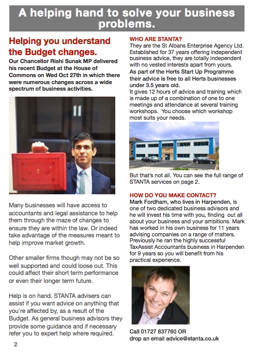 If you’re interested in registering for this FREE package of support, send an email to advice@stanta.co.uk or telephone 01727 837760. Please provide these details: