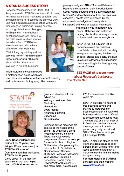 Twitter @StantaAdvice Facebook STANTA LinkedIn STANTA Instagram stalbansenterpriseagency