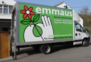 Above. The colourful emmaus vehicle outside their furniture warehouse