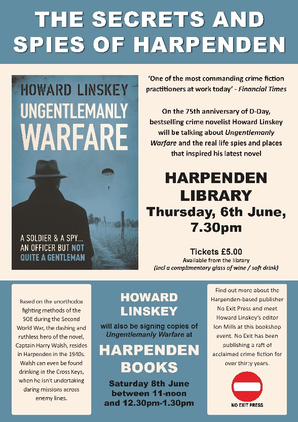“I met Howard in Harpenden Books on Saturday June 8. He explained how he used his knowledge of Harpenden (a previous resident) to weave realistic elements into the storyline of his new novel.