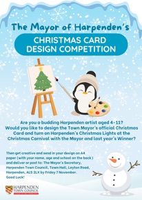 The Mayor's Christmas Card Competition is now open and local children are invited to design the Mayor's official card. the winner will also turn on the Town's Christmas lights at the Carnival! Click on the link to find out more!
