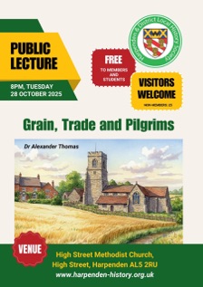 The next Harpenden & District Local History Society lecture is by Dr Alexander Thomas and entitled Grain, Trade and Pilgrims: Harpenden from Prehistory to Medieval. This lecture will explore the key events which shaped Harpenden’s development and the big questions still remaining about its early history.