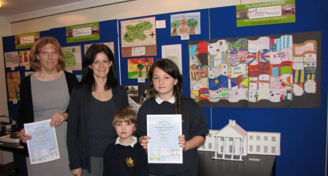 Over one hundred children, parents and teachers attended The Harpenden Society 2014 Primary Schools Arts Competition Awards event at Rothamsted Conference Centre on Wednesday March 26. The winners were presented in true ‘Oscar’ style with certificates for 3rd, 2nd and 1st places, plus a number of commendations and Special Awards for truly outstanding work. Hosting the event were committee members Ron Taylor and Eric Midwinter who created the concept ( Hail Harpendonia) then liaised with the Primary Schools from the launch in November to the judging on March 19. All the nominated works were on display around the conference centre for all to see.