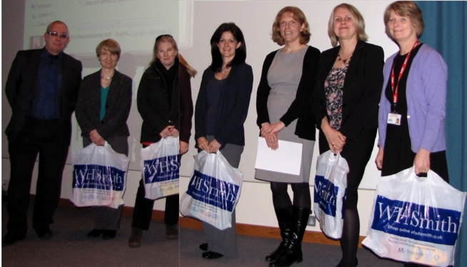 Below: Teachers from participating schools with art goody bags donated by WHSmith in Harpenden and presented by Harpenden manager Allan Roberts.