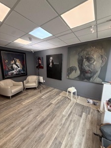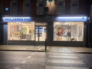 The Thomas D Wright exhibition at Molasses House in Harpenden was almost complete as a couple of his paintings needed a few final touches.