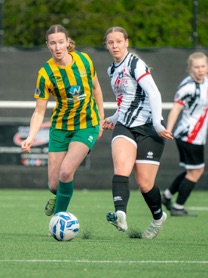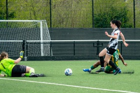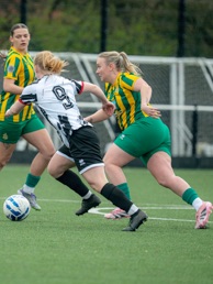 Next Rebecca McShane headed on a pass from Chloe Dinsey for Sophia Amanor to latch onto but her firm effort was pushed away by Williams for a corner kick. Nearing the half time whistle saw the Harps finally score an equalizer when Zoe Allen-Thomas hit a long ball forward for SOPHIA AMANOR to latch onto and after holding off a couple of defenders she then brushed Williams aside and then stroked the ball into the unguarded net to make it 1-1 at the break.