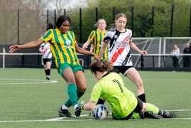 Then Sophia Amanor went close when following a poor clearance from Williams saw Amanor try a snapshot which whistled just wide of the far upright. A free kick from Maddie Green for the visitors was well saved by Alderman whilst at the other end a free kick from Belle Shannon was spilled by Williams and Amana Oguntuga following up saw her effort saved Bryony Williams low down to her right.