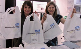 Above: Nikki Sharkey (left) with Ruth Bradford. Goody bags included information about becoming a member of HCT.
