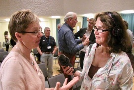 Below:Marion Dunstone, (left) Director of Operations being interviewed on Nickey Radio