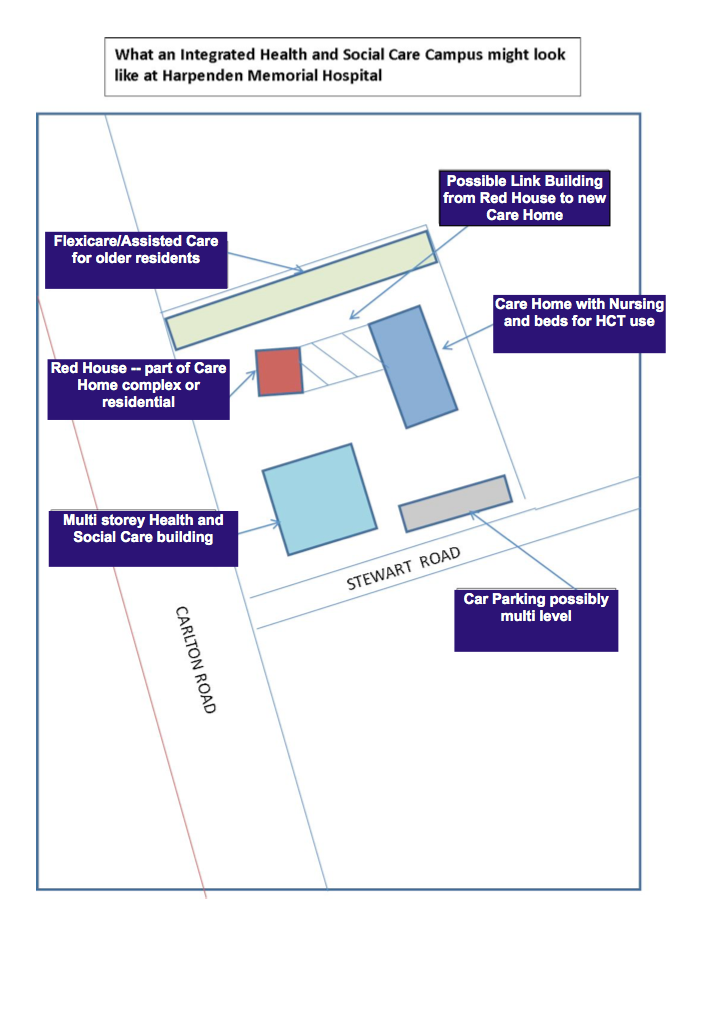 ¥Redeveloping the whole of the existing Harpenden Memorial Hospital site to create a new health and wellbeing centre in the existing Stewarts building, funded by the sale of the remainder of the site for a new housing development. Subject to planning permission, the housing development would include affordable homes and would see the Red House building converted into apartmentsWorking with local NHS hospitals to provide a range of desirable services like Diabetes, Leg Ulcer, Bladder and Bowel service for adults; Blood tests; Speech and Language Therapy service for children.