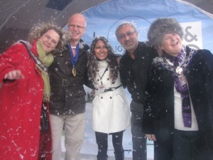 Above. Town Mayor, Councillor Mrs Nicola Linacre with Zoe and the deputy head of High Beeches.