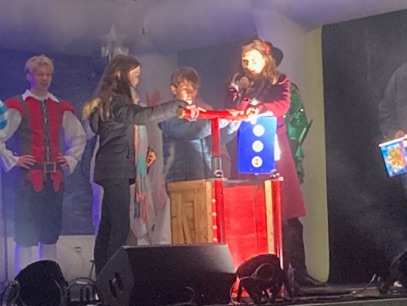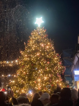 Nov 23. Harpenden’s Christmas Lights switched on by our Town Mayor Cllr Beth Fisher and the two winners of her Christmas Card Design Competition in 2024 & 2025