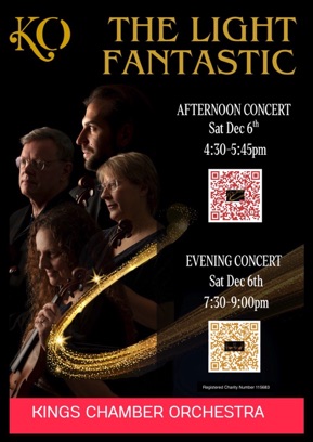 Dec 6.The Kings Chamber Orchestra will be celebrating all the years they have been together! This years Christmas concert titled "The Light Fantastic" will be a performance filled carols, stories and music from the silver screen, amid Classic favourites by Tchaikovsky, Nielsen, Strauss, Mozart and many more.